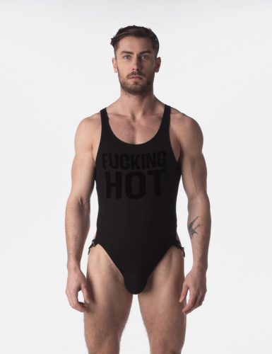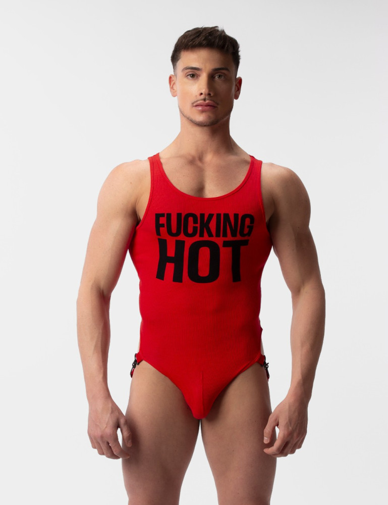 Zeige deine Attraktivität mit diesem gerippten Körper. Sie besteht aus bequemen Rippen mit einem normalen Schnitt und einem riesigen "FUCKING HOT"-Muster. < / >Die Tasche hat eine Riemenstruktur für mehr Auftrieb und Metallschnallen für einfacheres Anziehen.