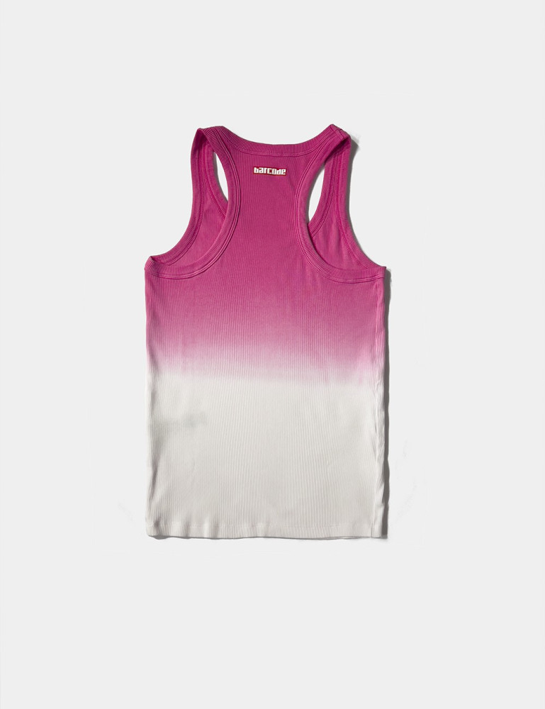 Dieses Tanktop mit gripendem Ausschnitt zeichnet sich durch einen eng anliegenden Stil aus, der die Figur des Trägers betont. Der Stoff wechselt nahtlos von einem Farbton zum nächsten und erzeugt einen abbauenden Effekt, der eine dynamische visuelle Anziehungskraft verleiht. Das Oberteil besteht aus bequemem, elastischem Rippenmaterial, ideal für den Alltag oder das Training.
