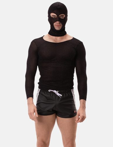 Diese Maske besteht aus Stretch-Lurex-Material, was ihrem Design einen
