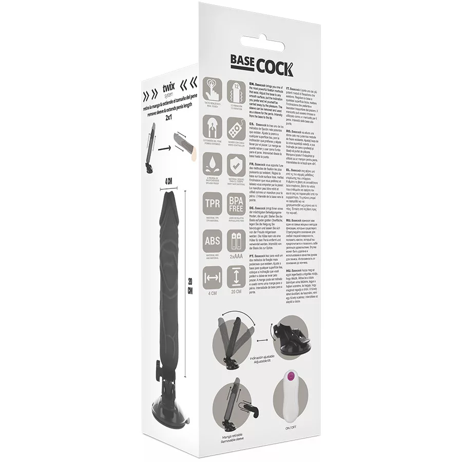 BASECOCK - REALISTA VIBRÁTOR TÁVIRÁNYÍTÓ FEKETE 20 CM -O-4 CM