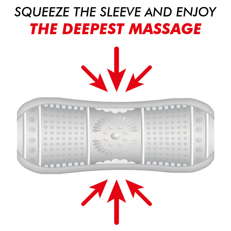 • Nagyobb érzés érdekében szorítsd meg a maszturbációs hüvelyt