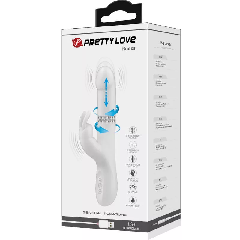 Nyúl vibrátor többsebességű rezgéssel, tolódítással és a forgással egyszerre stimulálja a hüvelyt és a csiklót! A Pretty Love nyúl vibrátor kellemes textúrájú, és mélyen csavarodik a hüvelyben, miközben masszírozza a G-pontot. A csiklót egyszerre stimulálja a rugalmas stimulátor rezgésekkel. Ez a szórakoztató program, amely több sebességű rezgéssel, tológással és forgással rendelkezik, könnyen vezérelhető a vezérlőgombbal. A vibrátor tökéletesen illeszkedik a női anatómiához, és teljesen bársonyos puha szilikon anyagból készült, ami játék közben jól érzi magát a bőrön. Emellett a vibrátor feltölthető a mellékelt USB kábellel.