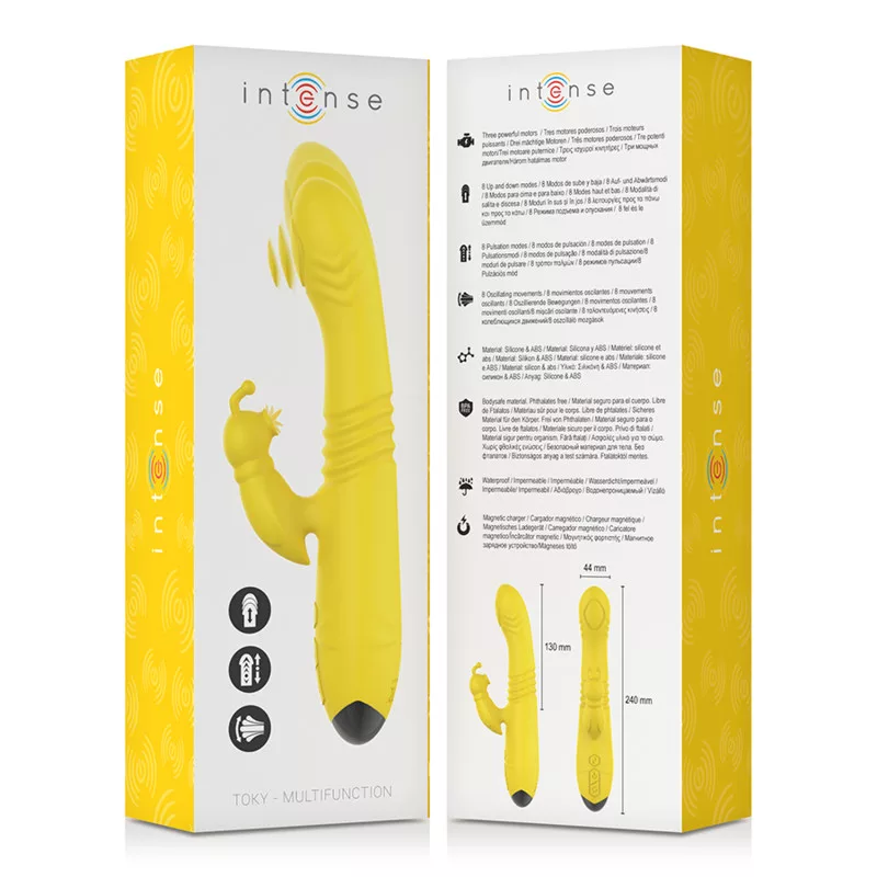 Az INTENSE márka TOKY többfunkciós vibrátora kivételes szexuális játék, amely arra tervezett, hogy a gyönyörét a következő szintre emelje. Ez a feltölthető, fel-le (fel-le mozgás) vibrátor páratlan stimulációs élményt nyújt. 8 pulzációs típussal és egy rovar alakú klitorális stimulátorral rendelkezik, amely 8 nyalogatási módot kínál, a TOKY célja, hogy kielégítse a legmélyebb vágyaidat.