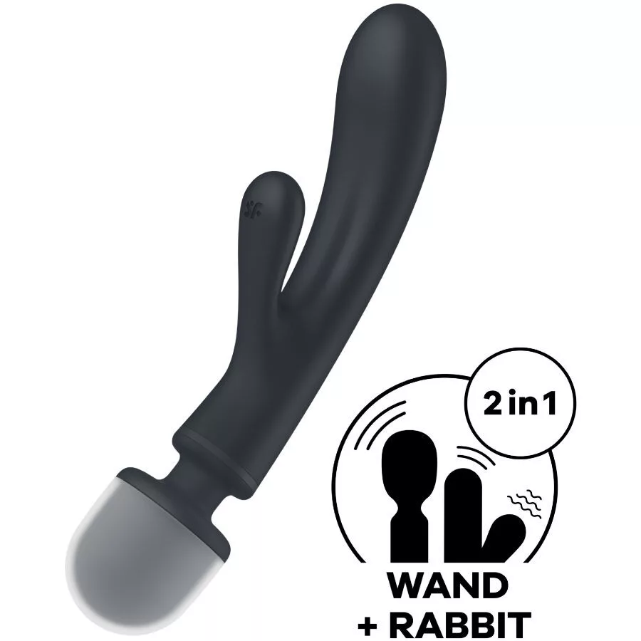 Három motor hajtja a szilikon Satisfyer Triple Lover két funkcióját, nagy erővel. A vibrátor használható nyúl típusként a G-pont és a csikló szinkronizált stimulációjához, vagy masszírátorként teljes testmasszázshoz.