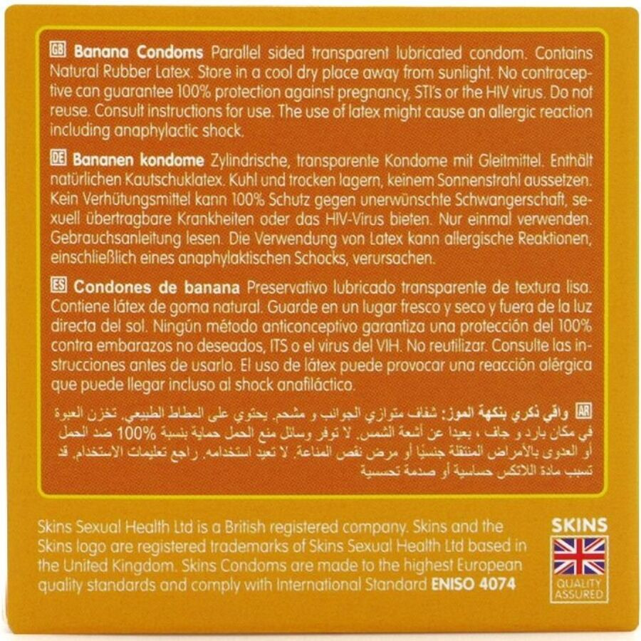 Örömet szerezzen az ízlelőbimbói a Skins Banana Condoms ízlésével! 4 banánízű óvszer egyenként csomagolva, hogy könnyen használható. Jól nézz ki! Jó érzés! Élvezd a természetesen jobb szexet egy óvszerrel, ami a te részednek érződik. Olyan átlátszó és vékony, mintha egy második bőr lenne. A Skins óvszerek lehetővé teszik, hogy biztonságosan érezd magad anélkül, hogy feláldoznád az örömöt!