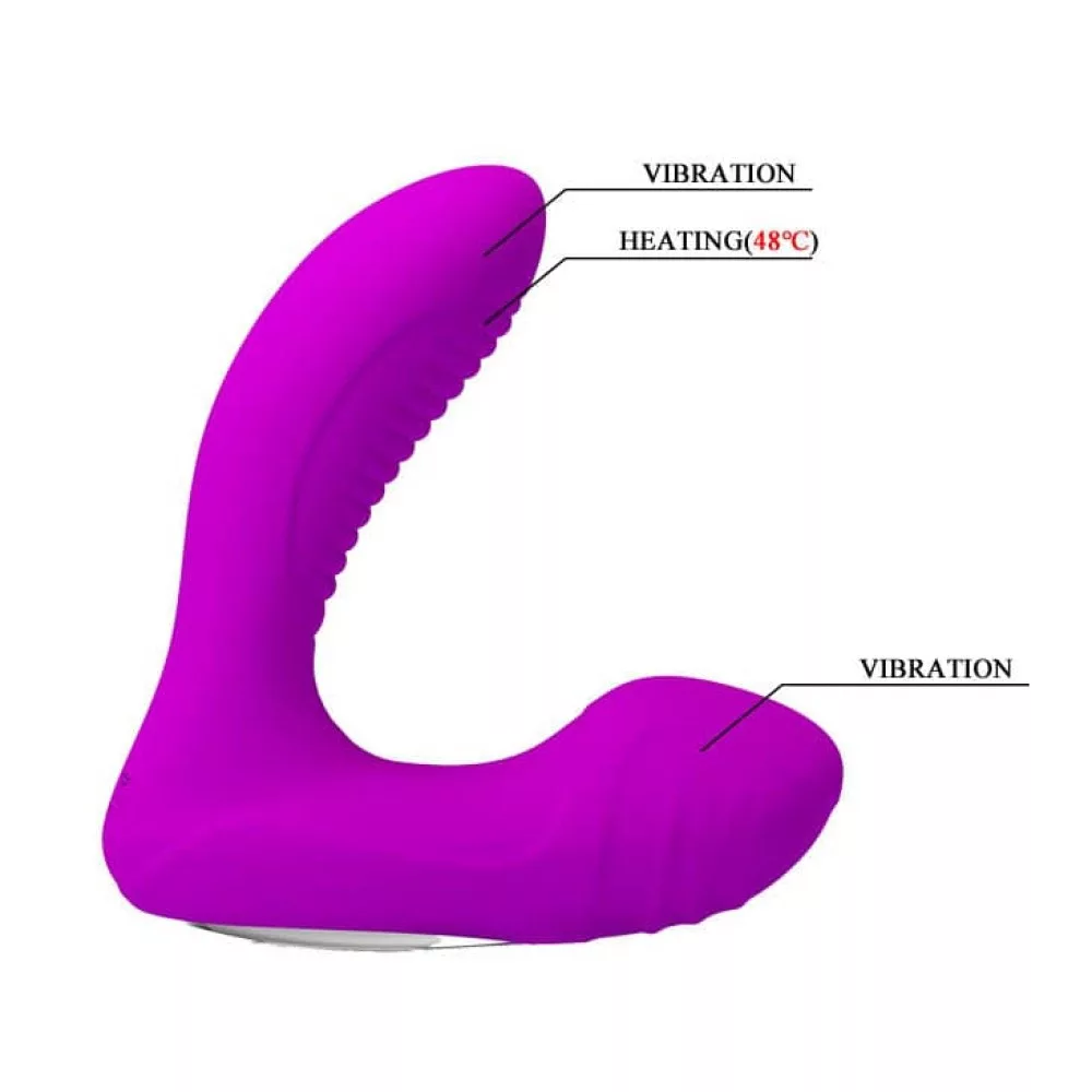 Made of skin-friendly material, silky to the touch, anatomically perfectly shaped, heated to 48 ° C, vibrator prostate and perineum massager with ideal curved design with twelve vibration functions.