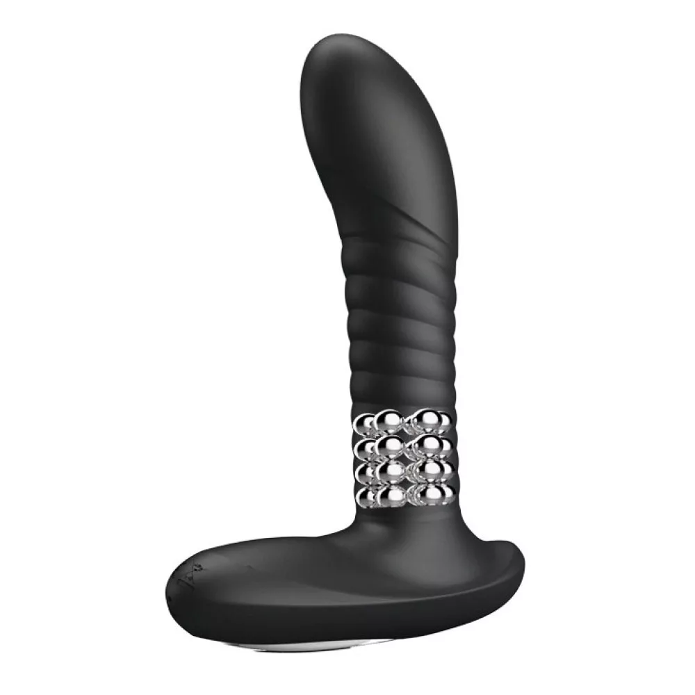 Made of high-quality material, anatomically perfectly shaped, with memory function, vibrator for prostate and perineum massager, with an ideal curved design, twelve vibrations, three rotation functions, and a widening base for safe penetration.