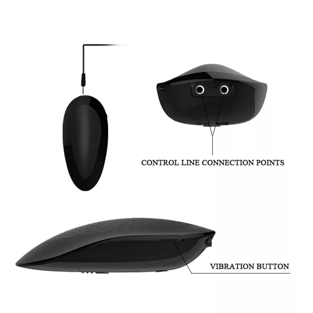 A realistically designed, penis-shaped, leather-like material with adjustable vibration function, controlled by wired remote control, with a veined surface, complete with testicles. It can be attached to a flat surface with the help of its suction cup.