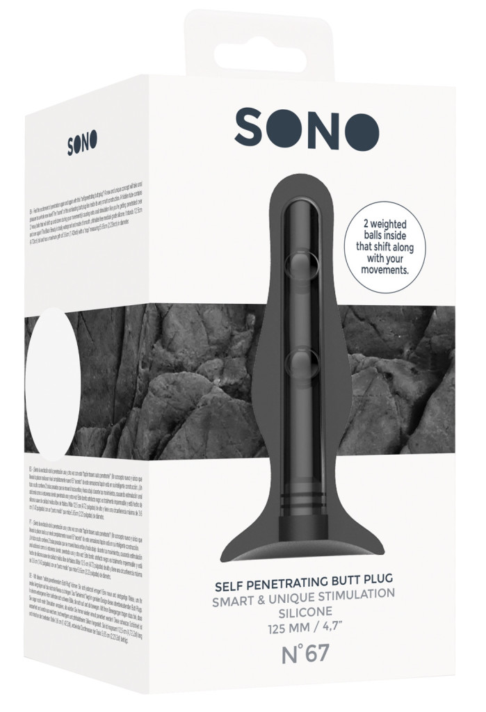 Discover a new dimension of sensuality with the Sono No. 67 silicone plug. The elegant shape and inner beads provide intense vibration with every movement. Thanks to its suction cup, it is safe to use, and its insertable length of 11 cm guarantees excitement! Enjoy the smooth surface and let the storm of passion take you away!