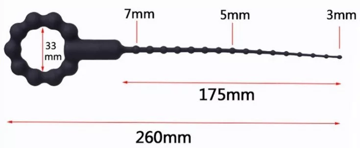 Discover new dimensions of intimacy with the O-Ring vibrating urethra bar. The 35 mm ring makes it easy to use, while the 17.5 cm long bar with variable diameter (3-8 mm) and beaded surface offer intense sensations. Its premium silicone material and vibrating function guarantee the path to the highlights. Experience a new form of satisfaction!