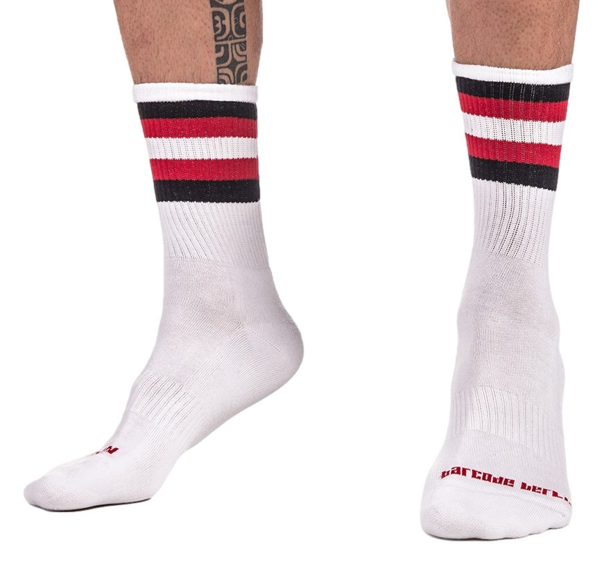 Style and comfort combined – HALF SOCKS striped white-black-red socks
