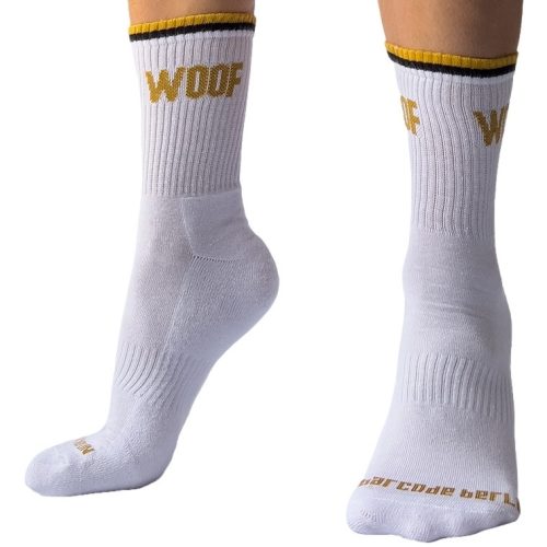 Woof Barcode Fehér Zokni – A Stílusos Kényelem Legjobb Barátja!