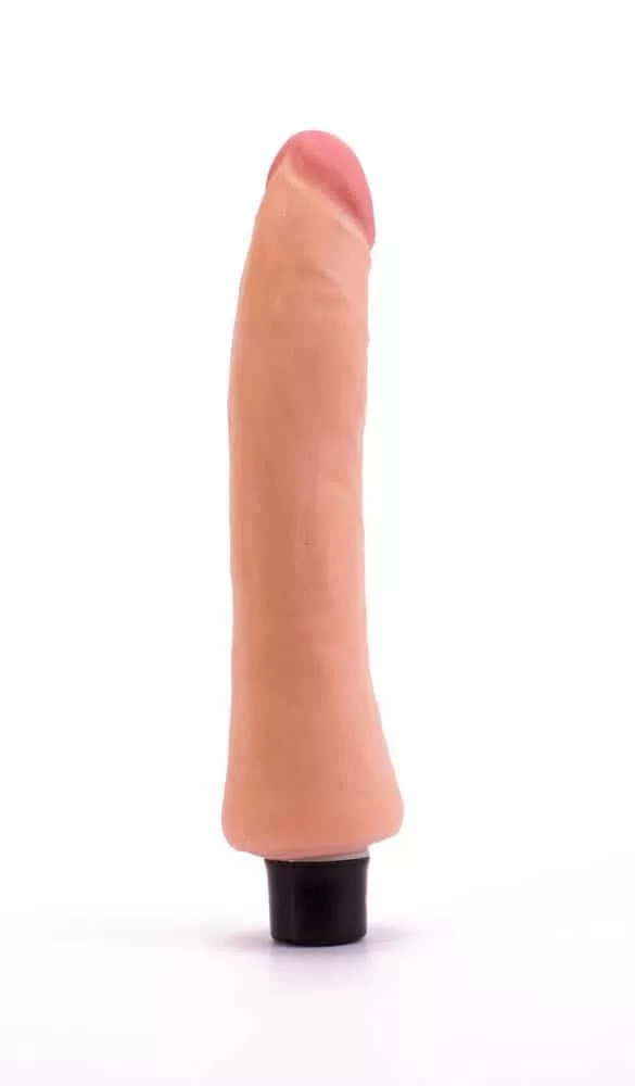 Realistic design in the shape of a penis, flexible, leather-like, leather-like, with 10 vibration functions, veined surface.