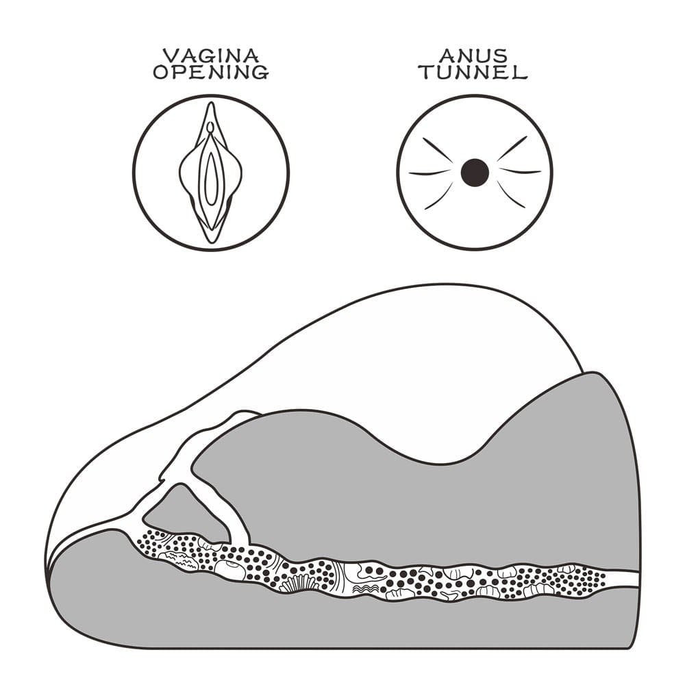 Ein individuelles erotisches Spielzeug, das nach einem Modell modelliert ist, aus lederähnlichem Material gefertigt, für Männer empfohlen, realistisch gestaltet und mit Anus- und Vagina-förmigen Körperöffnungen. Durch die Anwendung kann die Selbstkontrolle beim Geschlechtsverkehr erheblich verbessert werden, sodass die Zeit deutlich verlängert werden kann. Die Körperöffnungen wirken beim ersten Mal vielleicht zu eng, aber ihre Elastizität nimmt nach ein paar Anwendungen zu.