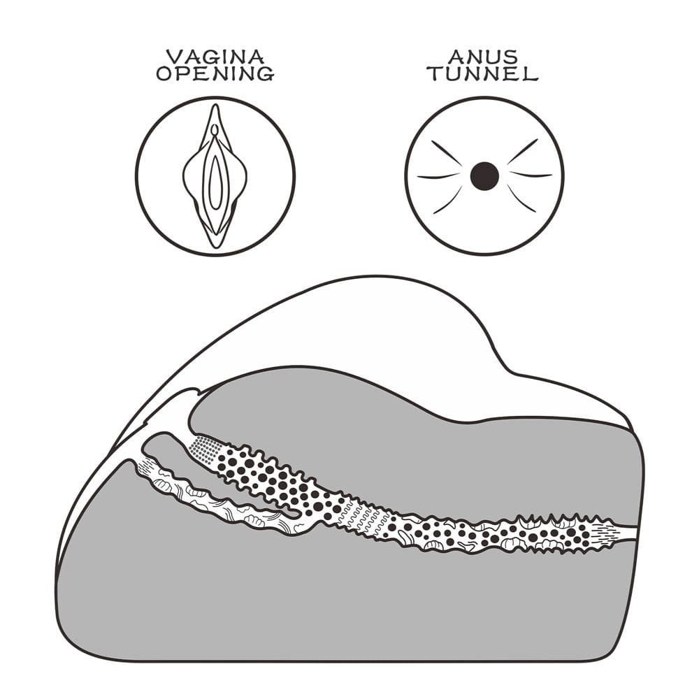 Ein individuelles erotisches Spielzeug, das nach einem Modell modelliert ist, aus lederähnlichem Material gefertigt, für Männer empfohlen, realistisch gestaltet und mit Anus- und Vagina-förmigen Körperöffnungen. Durch die Anwendung kann die Selbstkontrolle beim Geschlechtsverkehr erheblich verbessert werden, sodass die Zeit deutlich verlängert werden kann. Die Korpusöffnungen wirken beim ersten Mal vielleicht zu eng, aber ihre Elastizität nimmt nach ein paar Benutzungen zu.