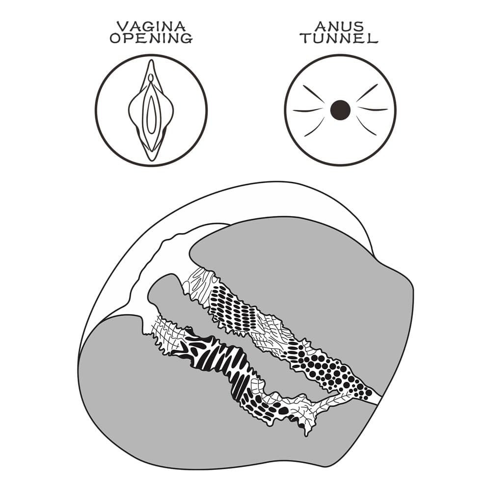 Ein individuelles erotisches Spielzeug, das nach einem Modell modelliert ist, aus lederähnlichem Material gefertigt, für Männer empfohlen, realistisch gestaltet und mit Anus- und Vagina-förmigen Körperöffnungen. Durch die Anwendung kann die Selbstkontrolle beim Geschlechtsverkehr erheblich verbessert werden, sodass die Zeit deutlich verlängert werden kann. Körperöffnungen wirken beim ersten Mal vielleicht zu eng, aber ihre Elastizität nimmt nach ein paar Anwendungen zu. Das Paket enthält außerdem einen Damentanga.