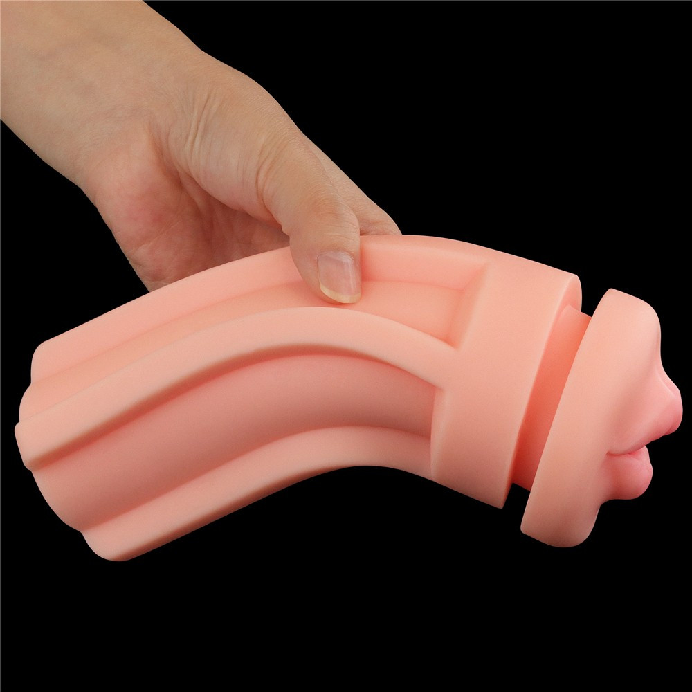 Compact made of high-quality leather-like material shaped like a beer can, mouth-shaped an individual erotic toy with a body opening, the inner wall of which is sideways It has bumps, ribs, rings along its entire length. Using the self-control during intercourse can be greatly improved, so the time for it is significantly can be increased.