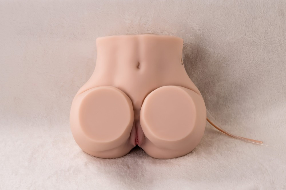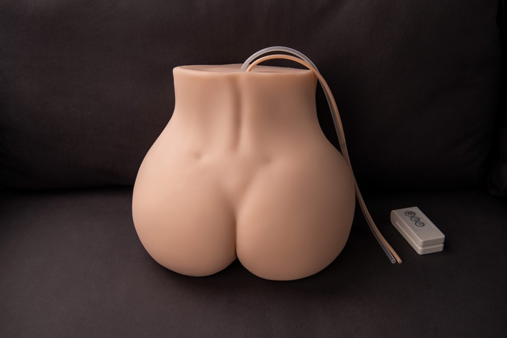 An erotic toy made of high-quality, soft, leather-like material, recommended for men, with breasts, vagina and anus shaped orifice, with 5 vibration and 5 suction functions, wireless remote control.