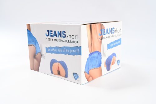Kiváló minőségű, puha, bőrszerű anyagból készített, férfiaknak ajánlott, vaginát és ánuszt formázó testnyílással ellátott, egyéni erotikus játék, kék színű farmer rövidnadrágot utánzó díszítéssel. Használatával az aktus közbeni önkontroll nagymértékben fejleszthető, így annak ideje jelentősen növelhető. A termék súlya 2,2 kg.