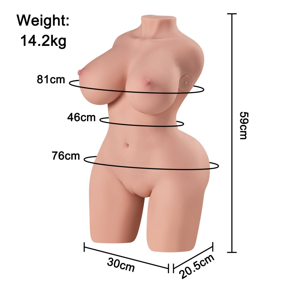 Hochwertig, soft, aus lederähnlichem Material, für Männer empfohlen, mit Brüsten, vaginaförmig Erotisches Spielzeug mit einer Körperöffnung mit 3 Vibrations- und 4 beweglichen Funktionen. Brust 81 cm, Hüftumfang 76 cm, Taillenumfang 46 cm.