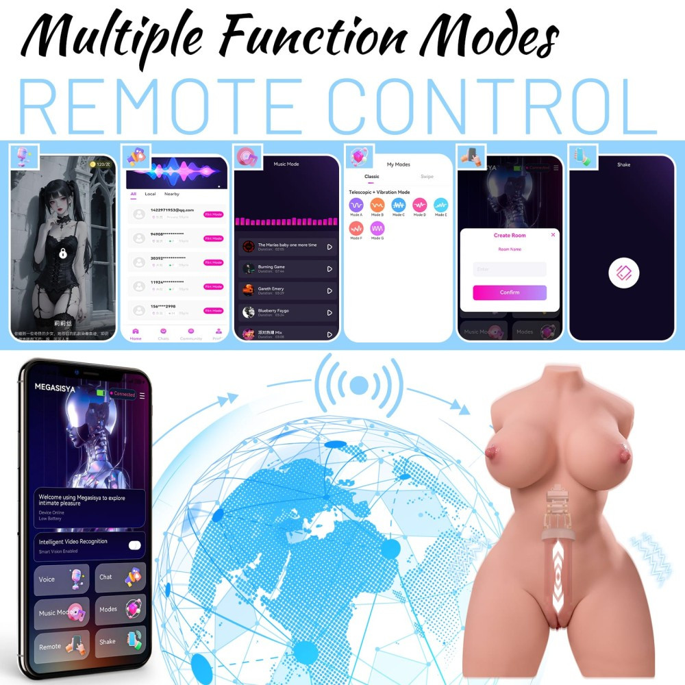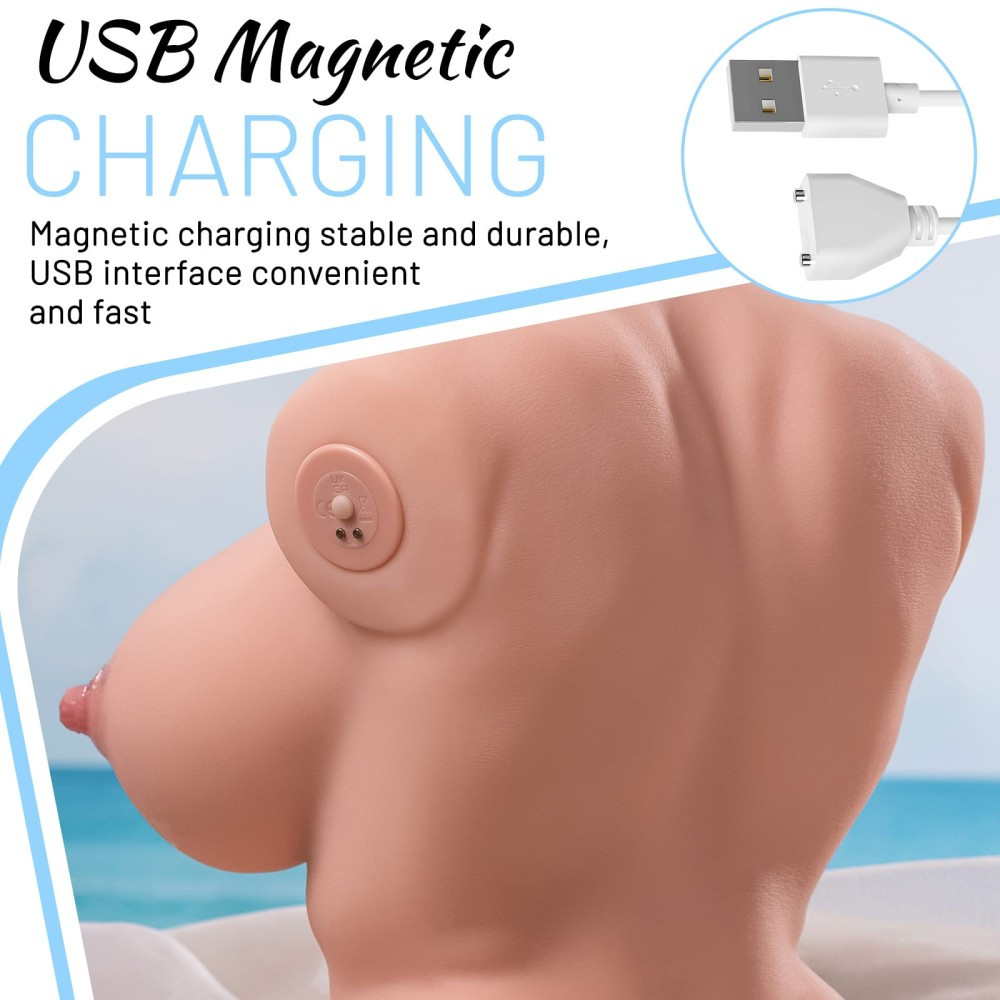Kiváló minőségű, puha, bőrszerű anyagból készített, férfiaknak ajánlott, mellet, vaginát formázó testnyílással kialakított erotikus játék, 3 sebességi és 4 vibrációs funkcióval. Használatával az aktus közbeni önkontroll nagymértékben fejleszthető, így annak ideje jelentősen növelhető. A termék súlya 12,7 kg. Magassága 57 cm, mellbősége 74 cm, csípőbősége 43 cm, derékbősége 74 cm, szélessége 31 cm.