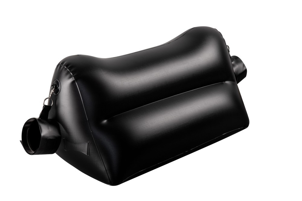 An inflatable 60 cm long, 36 cm wide, 36 cm high sex pillow with two attachable wrist straps, a 30 cm long caress, a With a 31.5 cm long pat. A repair kit is also included. Maximum Load capacity 90 kg.