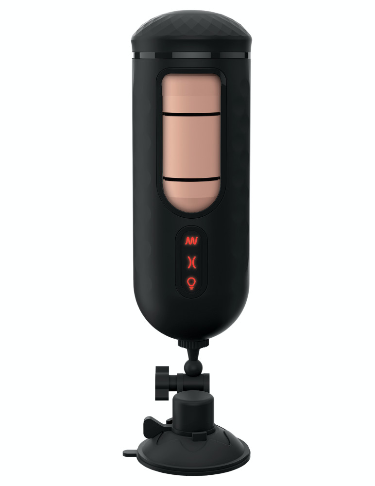 An individual erotic toy recommended for men, with 7 vibration and 6 speed levels, stimulating unique rotation and squeezing movements, with a vagina-shaped body opening. The functions can be controlled together or separately. It can be fixed on a flat surface with the help of its suction cup. Cleaning: before each use and after each use, remove the pad from the case and wash it with lukewarm soapy water and auxiliary cleaner, and after drying, treat it with maintenance powder. A water-based lubricant is recommended.