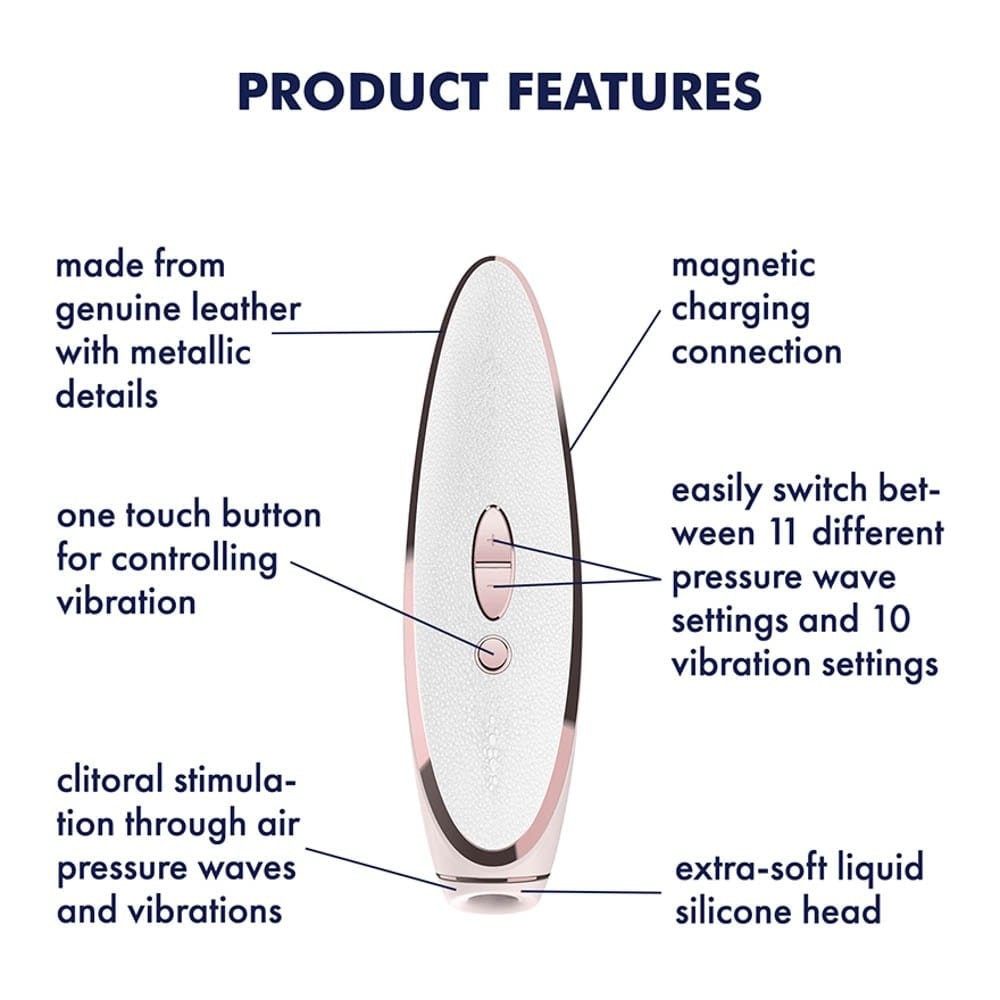 Easy to control, covered with genuine leather, luxurious quality and design, ergonomically designed, easy to use, designed for both air wave and vibration operation. It has 11 air wave and 10 vibration levels, the stimulation modes can be used independently.