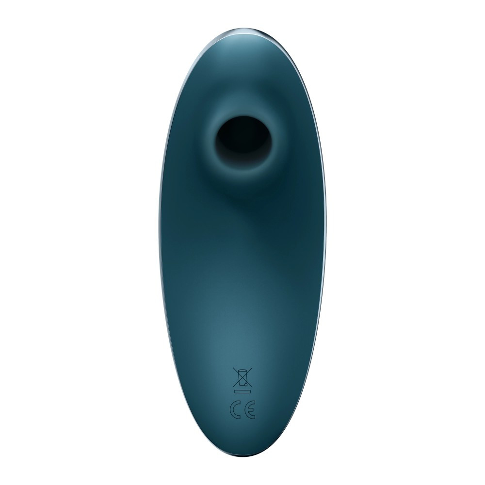 A clitoral stimulator made of high-quality, skin-friendly material, with a silky surface, ergonomically designed, equipped with two motors, 11 air waves at one end and 10 vibrator functions at the other end, operating in a so-called whisper mode (very quietly). The two motors can be controlled independently.