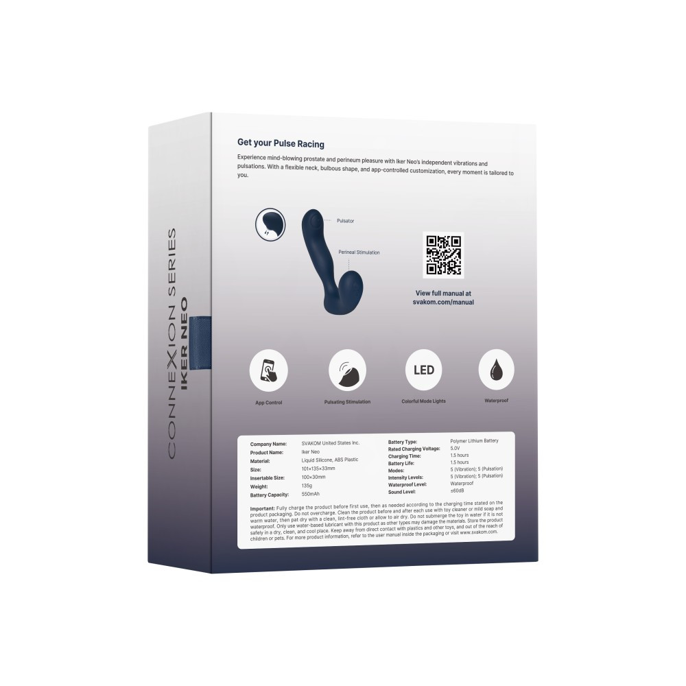 The Twin Neo is an interactive, pulsating prostate vibrator, intermediate and advanced users, which has ideal spherical curves for for a fuller feel and an elastic neck for easier positioning. Explore 5 vibration modes and intensities, while the stem head has 5 independent pulsation modes Offers adjustment for deep, targeted stimulation. Enjoy the rainbow ride while the color-changing lights indicate the vibration modes. Enjoyable and practical Iker Neo waterproof design, USB rechargeable, with travel lock, It has a memory function and a battery indicator. Az SVAKOM Connexion series, the Iker Neo is app-driven, so you can customize your settings, play remotely, and sync with interactive adult videos and webcam sites. Twin Neo pairs in seconds with the SVAKOM app. You can access bonus preset modes, or You can create your own modes with finger gestures, music, or ambient sounds. You can also use text chat, video call, or control sharing You can use it from any distance.